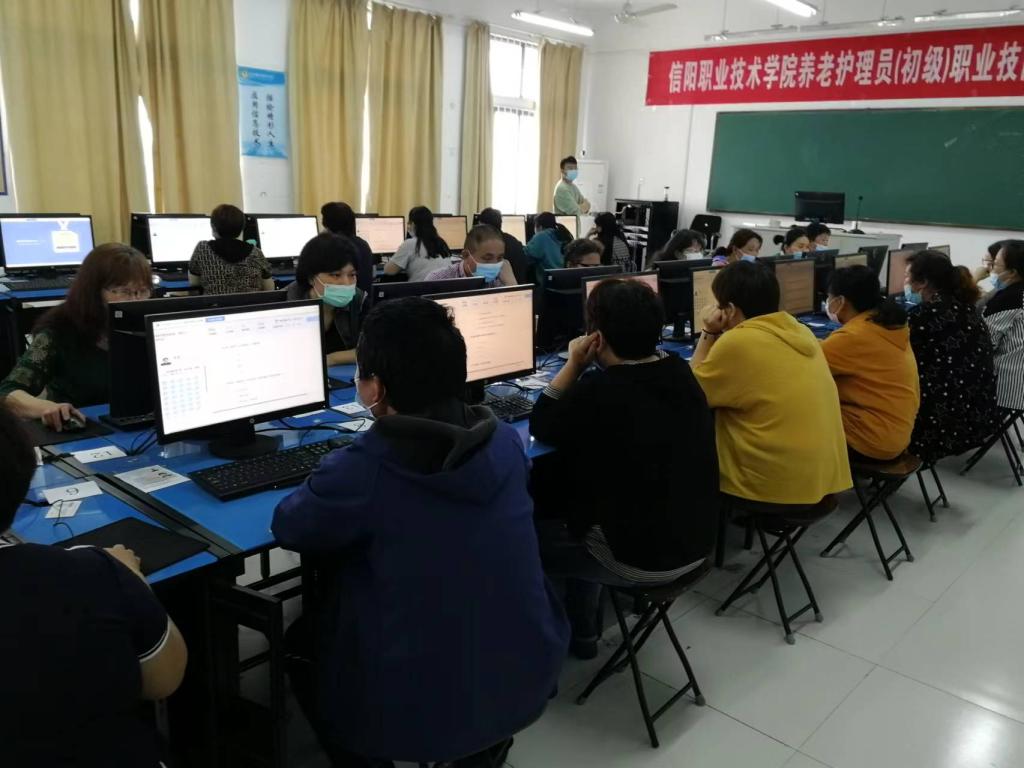 5月22日下午我校开展了首批养老护理员(初级)职业技能等级认定工作,这也是我校面向社会开展的第一批职业技能等级认定工作。参加本次职业技能等级认定的学员为浉河区妇联委托易就业培训学校培训的25名养老护理员(初级)。本次职业技能等级认定分理论考试(机考)和技能实操2个部分,分别在数信学院4000机房和护理学院302实训室举行。