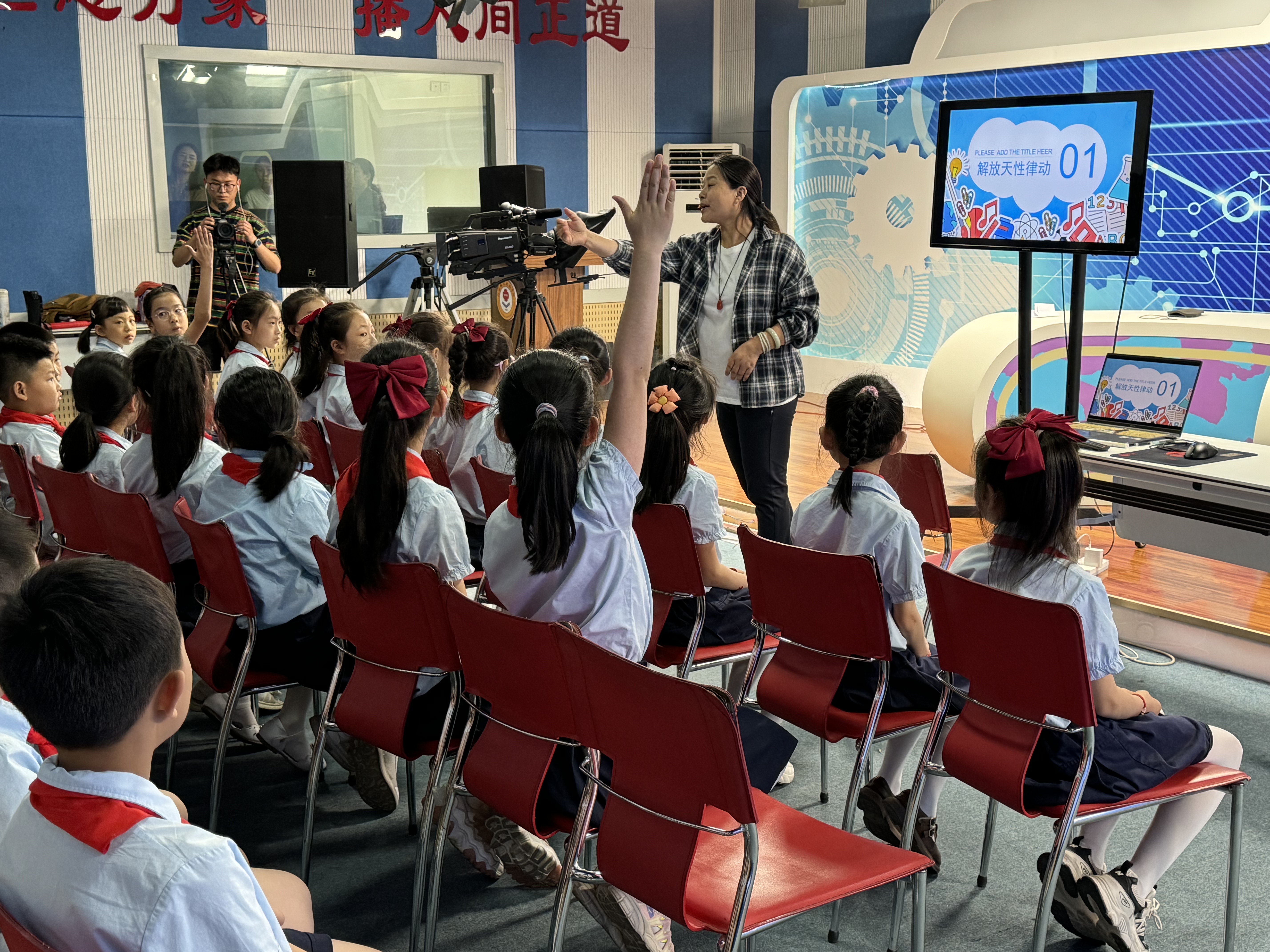 接着,播音与主持专业教授开始现场授课,为学生们讲解语音、语调、语气等方面的知识。在体验过程中,小学生们热情高涨,纷纷抢着拿起话筒,亲身体验了如何上镜,如何正确发音、调整气息和与搭档配合,感受成为一名主持人的光荣与梦想。通过老师认真、严谨的专业指导,学生们不仅提高了自己的普通话水平,同时对播音与主持职业中蕴含的“工匠精神”有了更深入的理解。