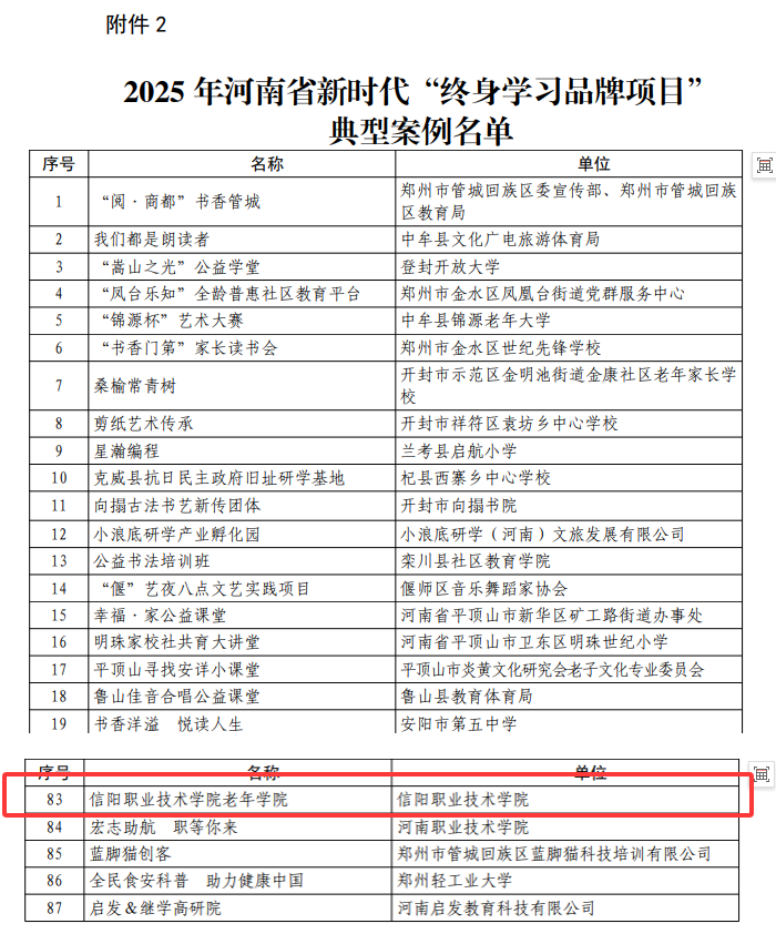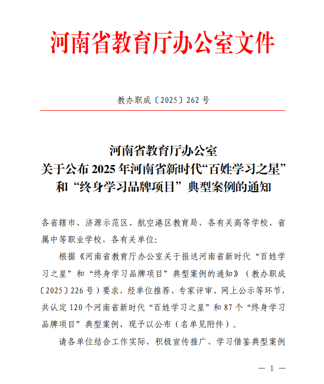 OK138太阳集团牵头申报的ok138cn太阳集团老年学院荣获2025 年河南省“终身学习品牌项目”典型案例。